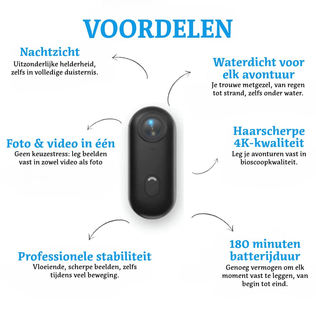 Beweeg vrij. Neem op alsof je ogen filmen.